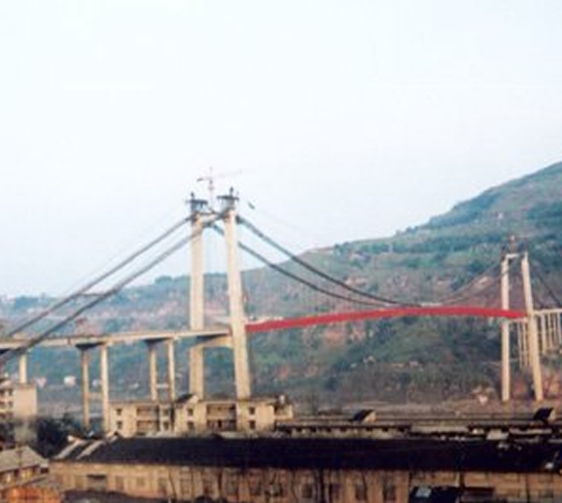 我司加入供货的忠县长江大桥是海内首座单跨加劲桁架梁悬索桥。。。它的完工,,,彻底解决了忠县住民和车辆过江难的问题,,,为推动忠县经济社会生长起到十分主要的作用,,,同时也成为忠县的一个独具特色的标记性修建。。。