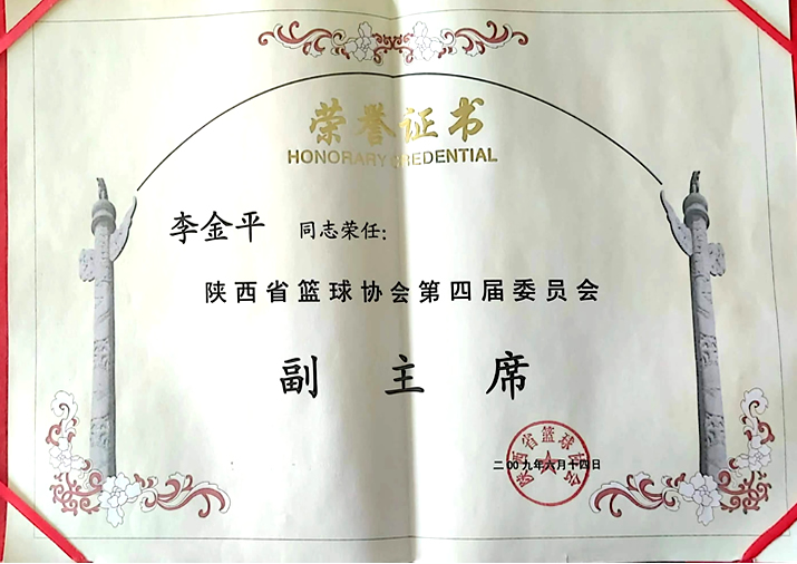 篮球协会副主席证书