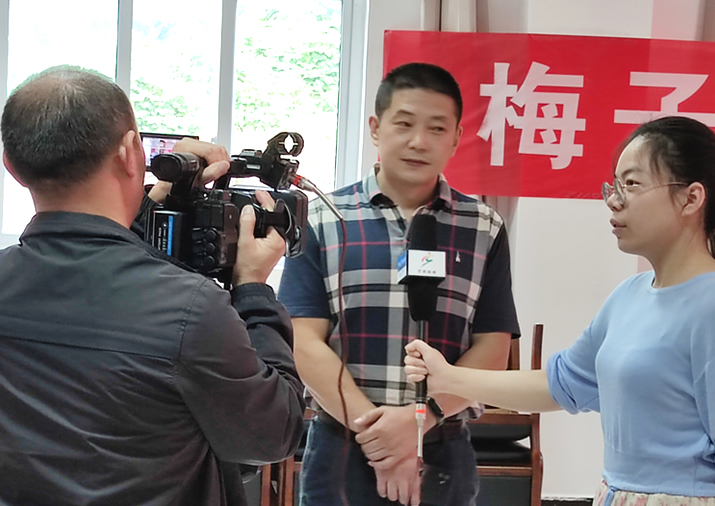 总司理在梅子镇发放助学金接受采访